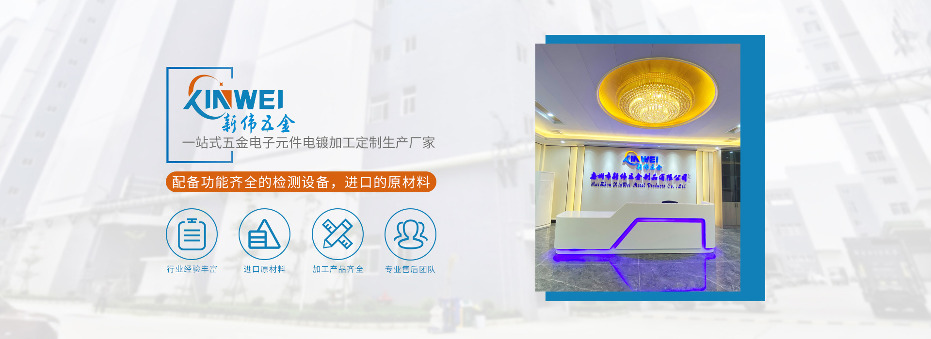 惠州市新偉五金制品有限公司(簡稱:新偉五金)坐落于中國廣東省惠州市,成立于2010年,是一家專業(yè)電鍍各種高品質(zhì)功能性的環(huán)保五金電子元件供應(yīng)商,公司已通過ISO9001:2015及IATF16949:2016質(zhì)量體系認(rèn)證。客戶至上,品質(zhì)至上,承蒙新老客戶的信賴,公司發(fā)展迅速,廠房車間面積10000平方米,現(xiàn)有員工200名,并擁有一批從事電鍍行業(yè)10年以上、經(jīng)驗(yàn)豐富的技術(shù)骨干,為客戶解決許多疑難問題,另有一支品質(zhì)工程小組,專業(yè)檢測產(chǎn)品品質(zhì),杜絕不良品外流,深受客戶好評。
